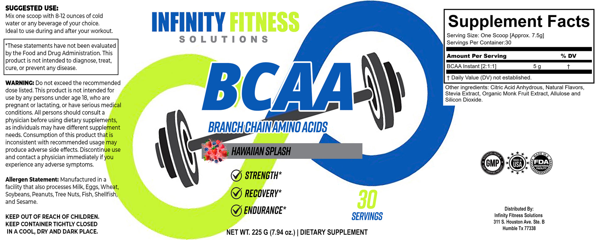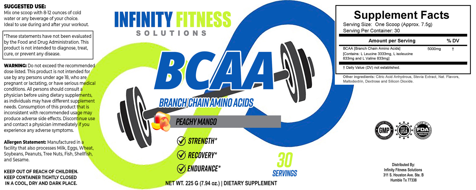 5g of clean amino acids per serving with amazing taste without any artificial sweeteners, flavorings, or dyes.